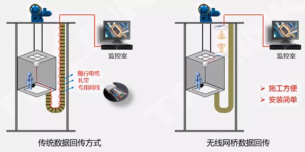 电梯监控工程中,传统的数据回传方式是用专用网线通过随行电缆进行数据回传,成本高且施工、维护难度大。电梯无线网桥监控逐渐成为当前电梯监控的主流回传方式。我们的电梯监控网桥成对安装,无需配置,可以很大程度上解决施工难度,稳定、易安装、成本低,可以为三五层到百层以上的大厦提供传输解决方案。