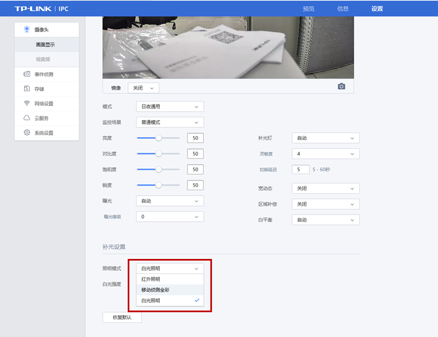 TP-LINK摄像机功能—调整双光源IPC补光模式的方法