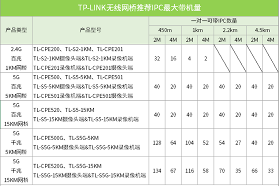 § 网桥规格:规格越高,所带IPC数量越多,5G网桥比2.4G网桥带机量大;