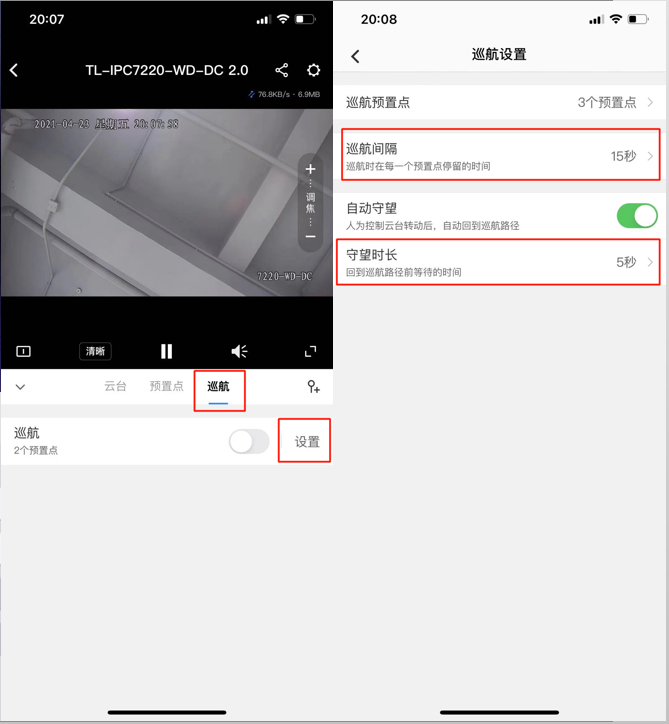 支持巡航的TP-LINK IPC均支持通过APP配巡航:
