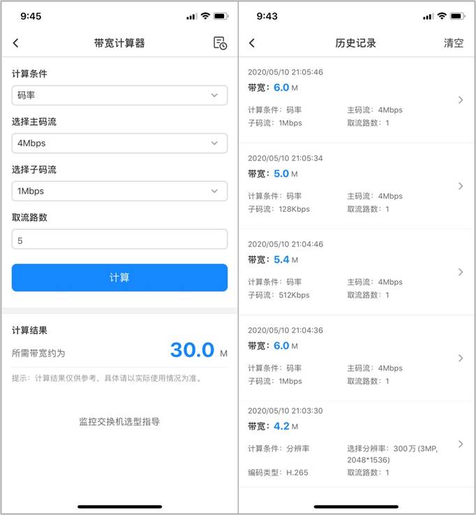在一些监控组网中,如果摄像头的数量非常多,提前计算分支和主干线路的占用带宽是非常重要的,选择合适的交换机在一定程度上可以保证监控的稳定,而口算往往会出错,有没有快速计算又不会出错的方法?