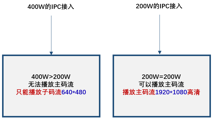 以TL-NVR6200为例,TL-NVR6200支持接入最高800万的摄像机,四画面预览支持4*1080P,即4路200万。TL-NVR6200同时接入200万和400万的摄像机,四画面预览时,200万的摄像机能显示主码流,而400万的摄像机却只能显示子码流,所以会误认为“400万不如200万清晰”。