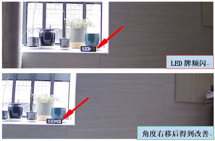 摄像机默认是自动曝光+逐行曝光方式,监控环境亮度很高时,为保证画面效果,摄像机会权衡降低增益和曝光时间(快门),当快门降的很低的时,每一帧拍摄的画面都曝光不足,从视频上来看就表现为黑色条纹或LED闪烁现象。
