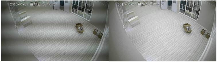 如果摄像头不易触及,则可以采用区域补偿的方式调高摄像头的曝光时间,进而改善频闪现象。以下是某酒店监控效果的改善效果: