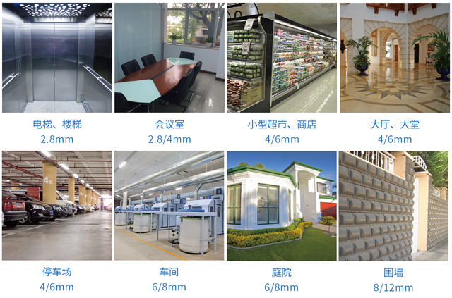 放到实际使用场景中,2.8mm焦距适用于电梯、楼梯等较为狭小的环境,4mm适用于会议室、商店稍大一些的场景等,而停车场、工厂车间、庭院等更开阔的地方则可以选用6mm以上的镜头;具体选择可以根据需要而定。