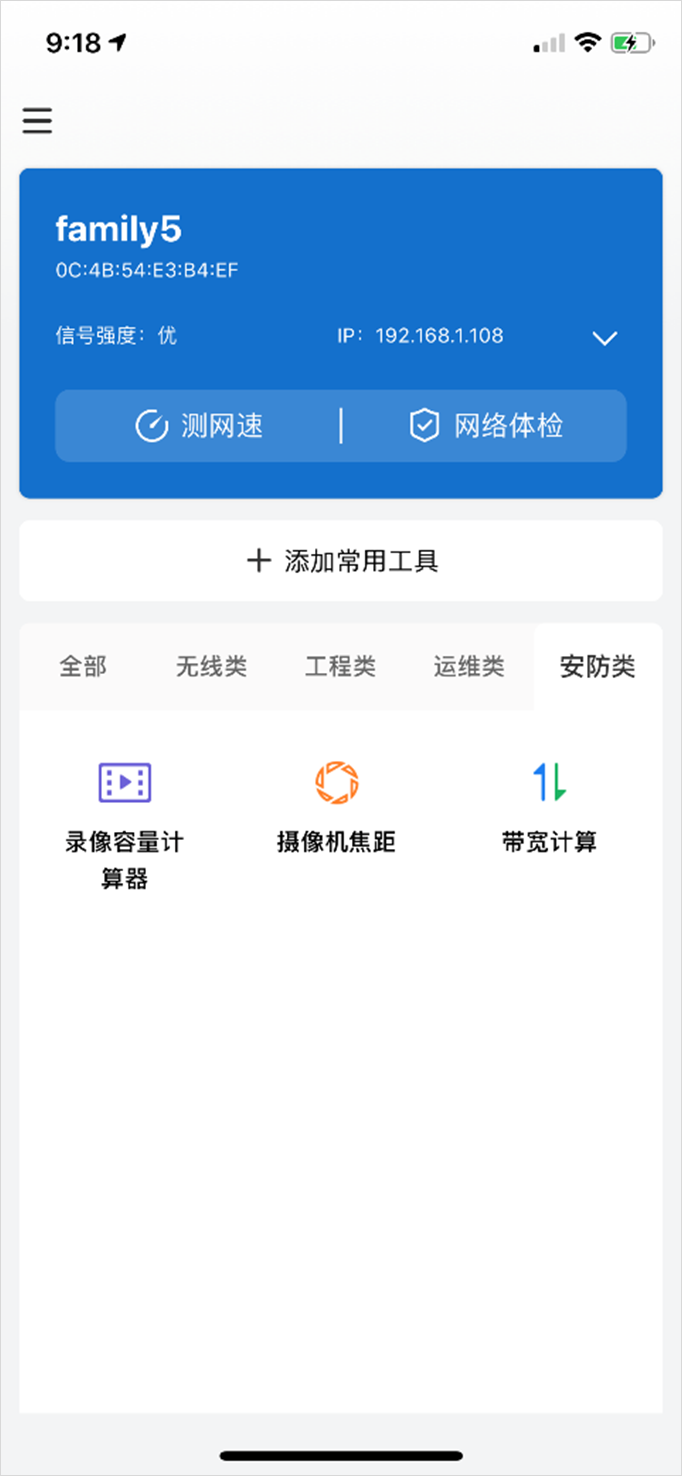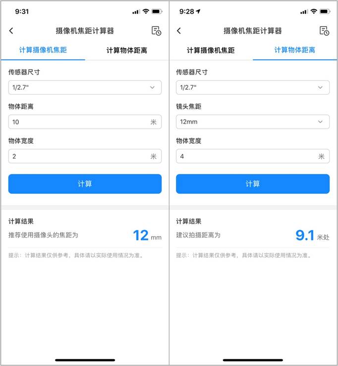 这里推荐大家一款非常实用的工具APP——网络百宝箱,这款APP支持无线类、工程类、运维类、安防类等各种实用的功能,其中摄像机焦距工具就可以快速计算物体距离、物体宽度、焦距之间的对应关系,选择摄像机之前简单一算就完事了。