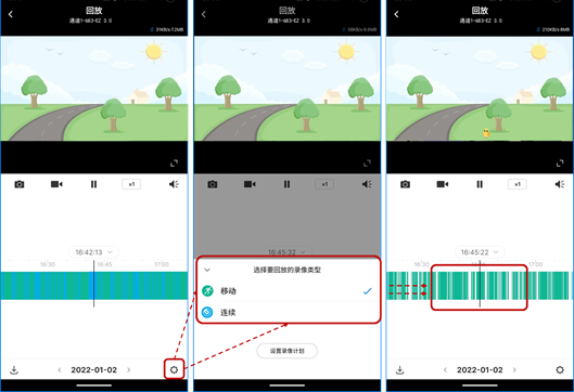 必须在NVR开启智能事件检测后,点击APP通道回放的设置进行筛选。