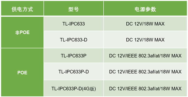 目前633系列球机大家庭中有以下几款机型,可以按供电方式分为PoE和非PoE两种: