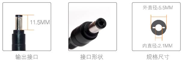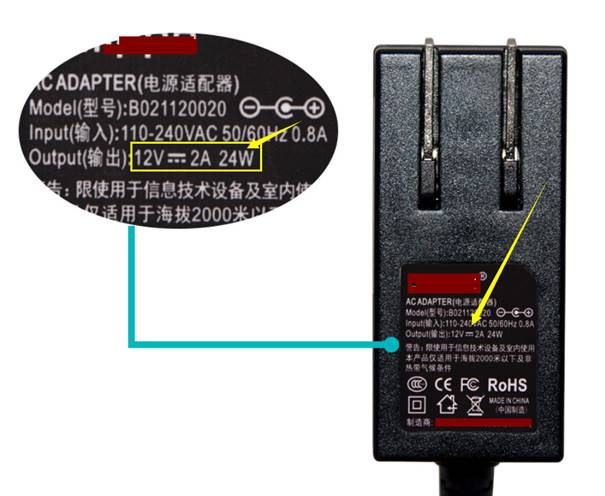 从上述表格中可以看出,对于只支持DC供电的球机,则需要选择合适的DC电源适配器:电压12V,电流1.5A及以上。室外球机的最大功率能达到18W,电流如果不达标容易导致摄像头无法正常开机或夜晚自动重启等问题。选择电源适配器时,可以根据适配器的参数确定是否合适,如下图: