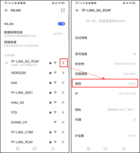 针对我们支持双频段(5G和2.4G)的摄像机,就不需要关心频段问题了,无论手机连接的哪个频段,直接配置即可。