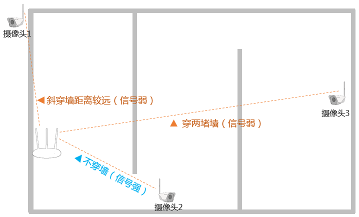 2、 无线IPC和路由器之间不要隔墙,对于无线干扰比较大的场景,可以选择固定信道来减少干扰。