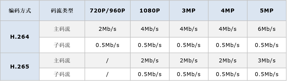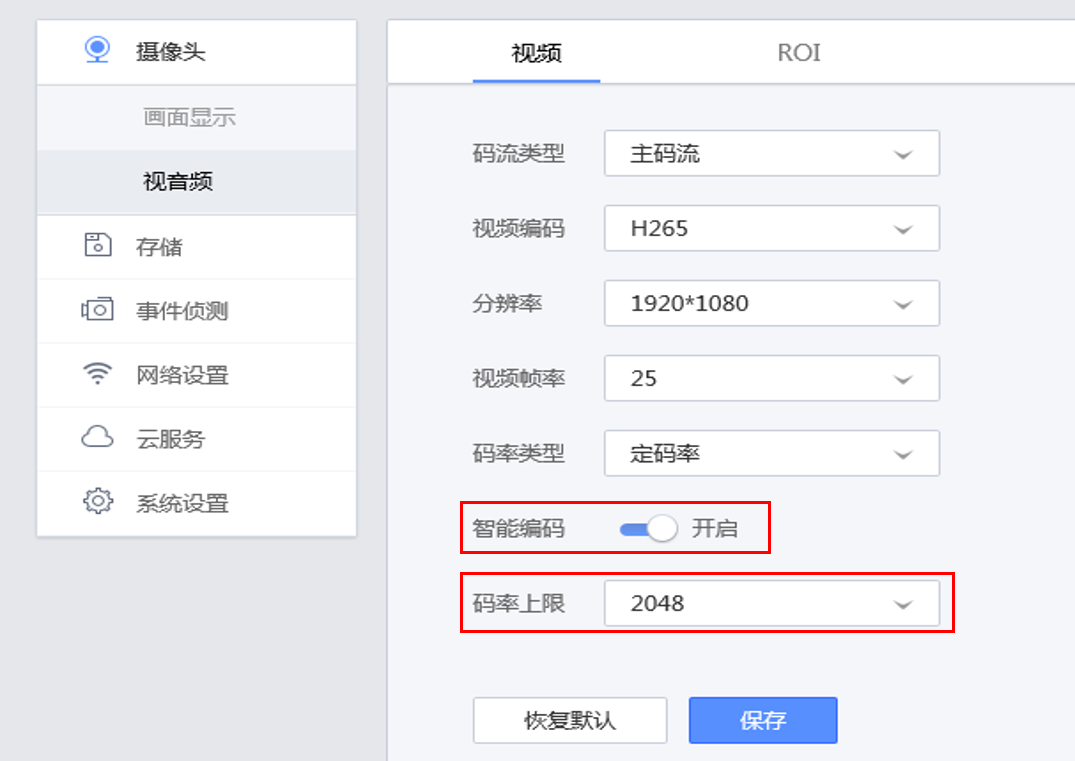注:智能编码和码率可在设备配置界面和录像机显示界面修改。