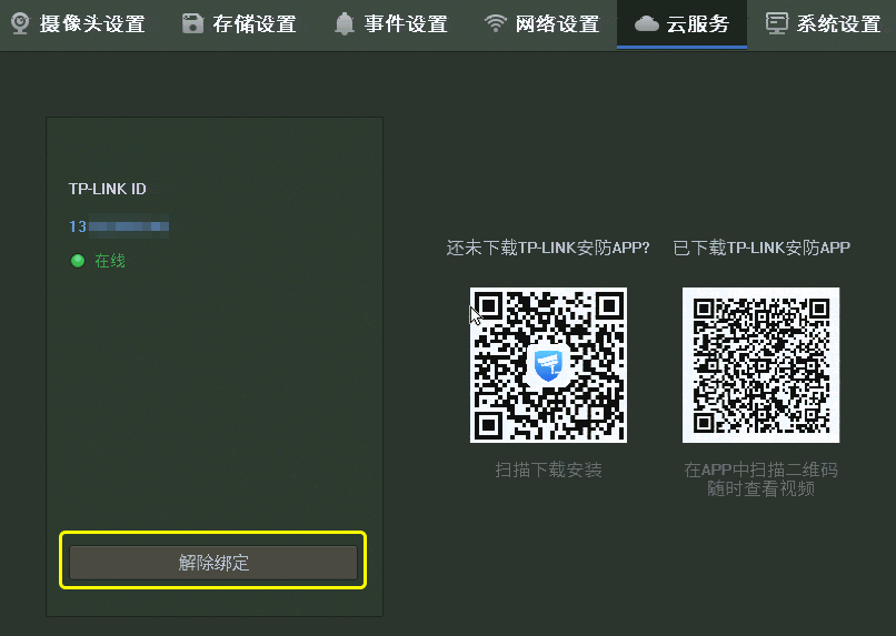 解绑成功后,再扫描云服务中的二维码,或点击“立即绑定”即可重新绑定TP-LINK ID。