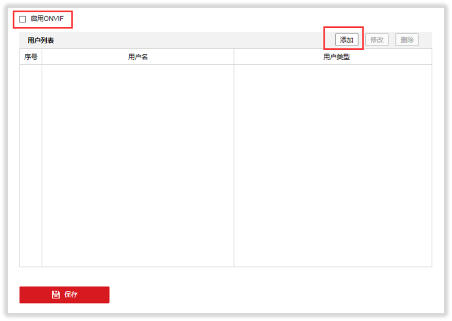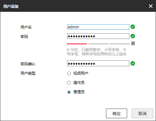 2、点击【添加】按钮新增Onvif管理员用户,并确定;