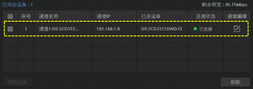 添加成功后,在已添加设备中可以查看到IPC的连接状态。