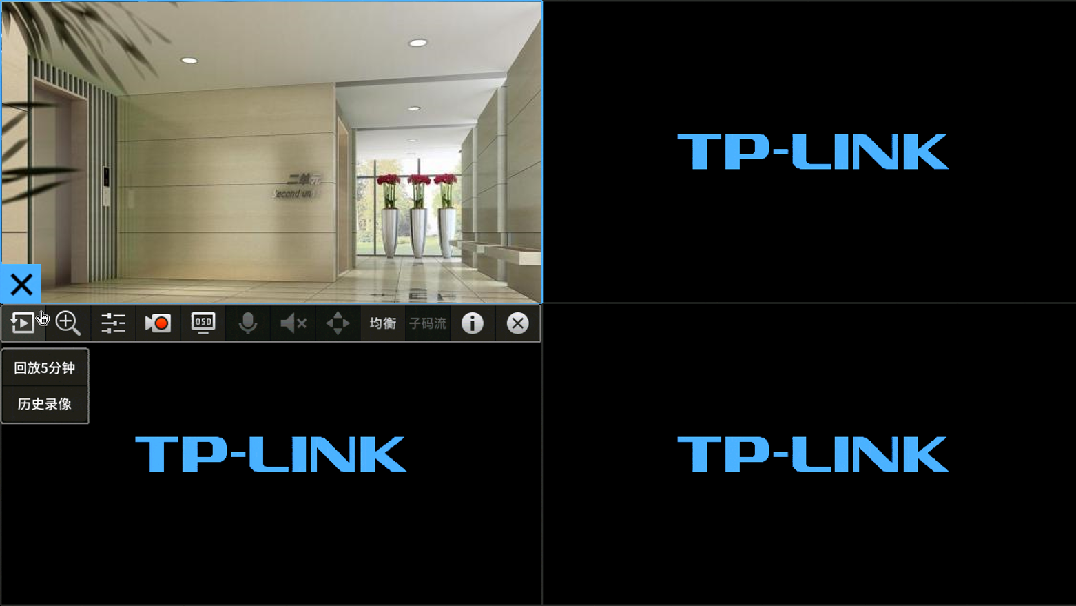 回放视频即重新播放录像机录好的视频,TP-LINK录像机可以进入录像回放界面进行单路或多路同时回放,也可以在预览工具条直接对所选通道“回放5分钟”或者“回放历史录像”。