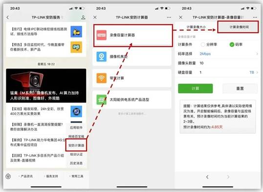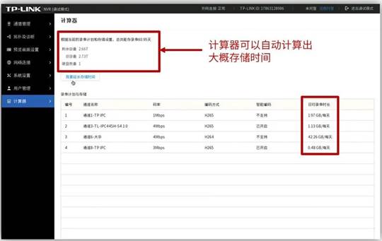可以使用“TP-LINK安防服务”微信公众号的“安防计算器”工具进行计算: