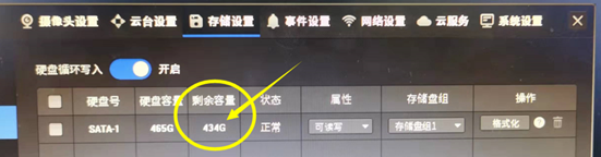 录像机硬盘剩余容量