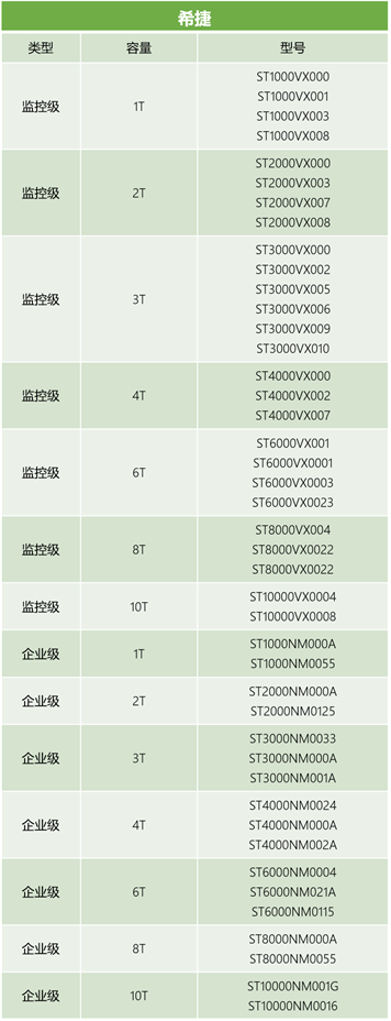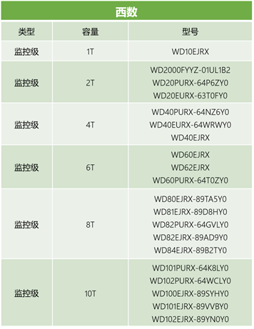 目前市面上主流硬盘产家主要是希捷和西部数据,根据常用市面上常见的硬盘并结合我们的实际测试结果,我们给大家整理了TP-LINK存储设备推荐的兼容硬盘列表,可供大家在实际应用中参考选择: