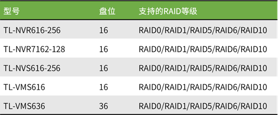 目前十六盘位以上的存储设备均支持RAID,具体型号如下: