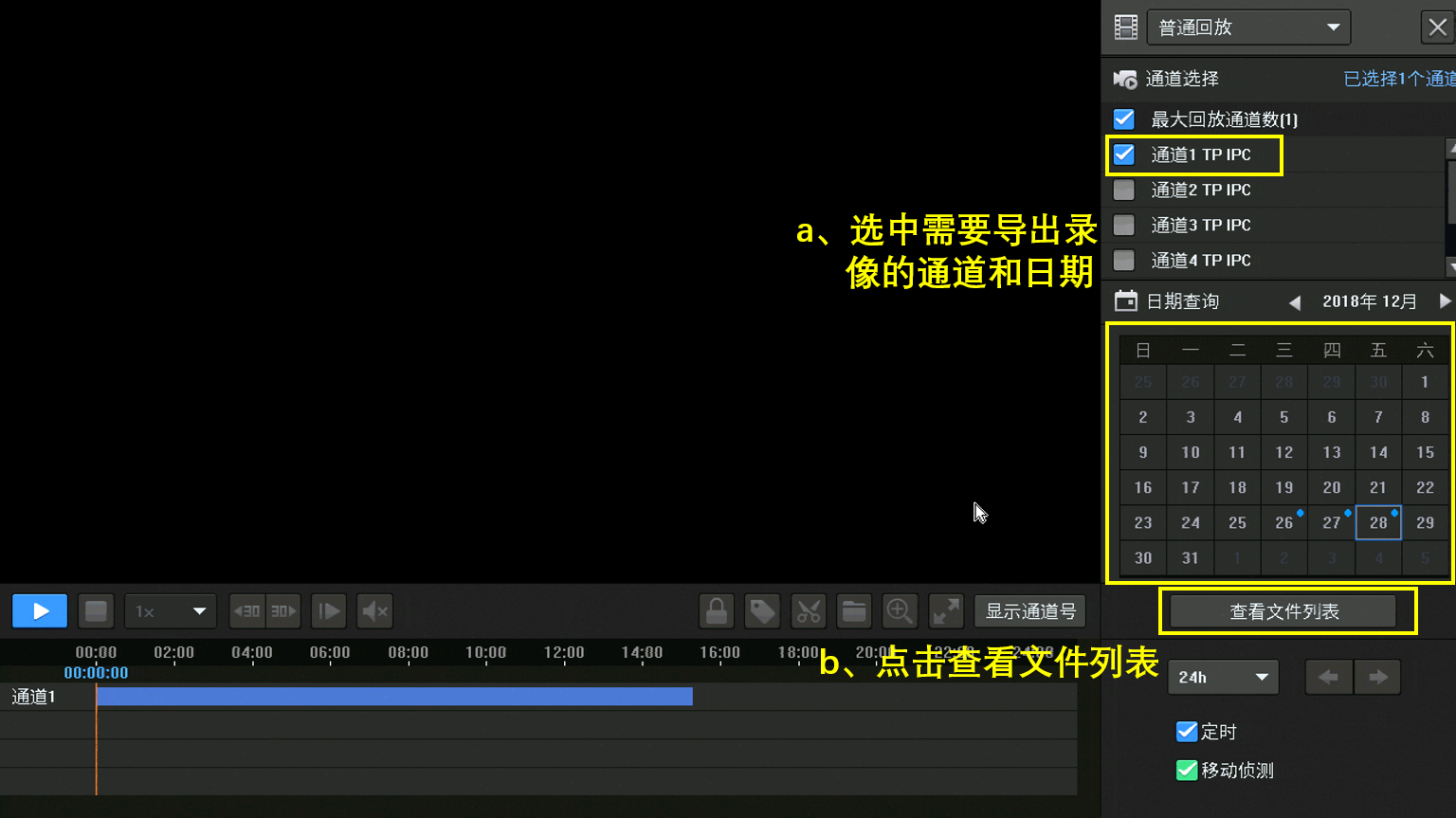 a、选中需要导出录像的通道和日期;