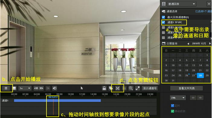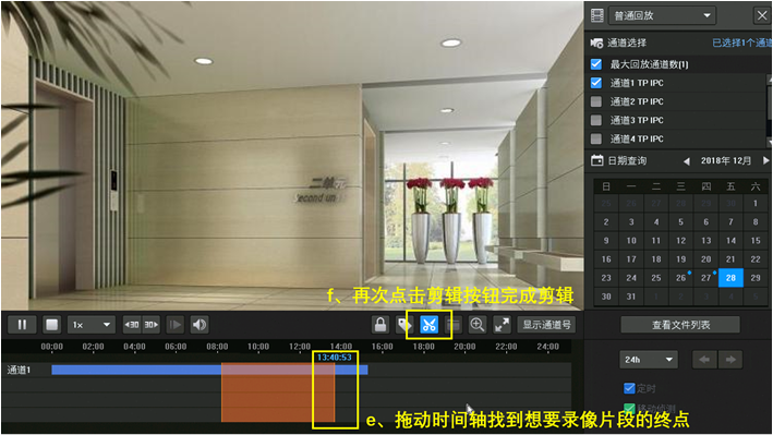 在回放界面同样可以进行录像剪辑导出,只导出想要的录像片段,不需要导出整段录像,非常方便实用。