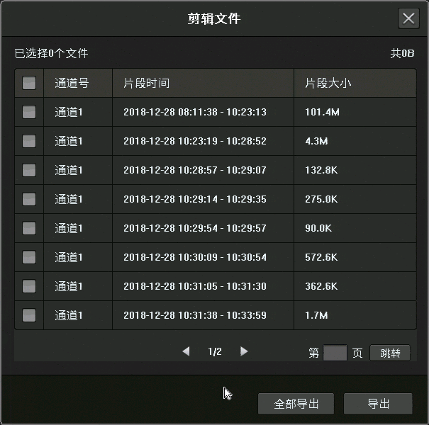 回放界面按录像文件导出