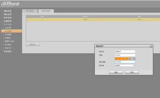2、在【设置>系统设置>用户管理>ONVIF用户】中,添加用户组为admin的账号密码。