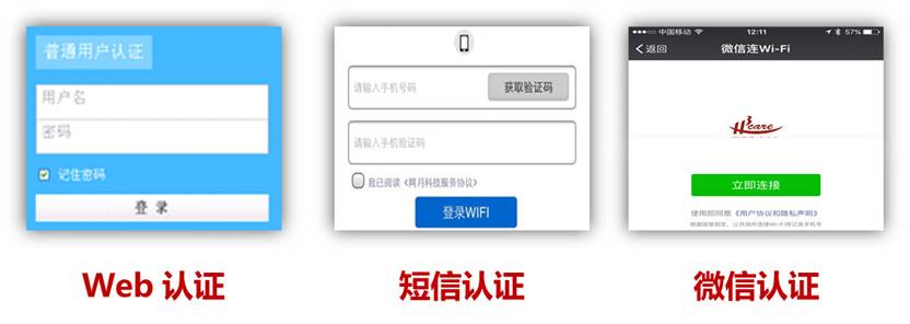 Portal认证通俗来讲,就是一种认证方式,当手机、电脑等终端连接无线Wi-Fi后还需要填写验证信息才能成功上网,也有部分电脑有线网络也有Portal认证。常见认证方式主要有以下三种:
