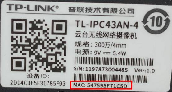 说明:不同品牌或不同型号的AC界面的“免认证策略”设置步骤有差异,请根据实际操作界面进行设置。摄像机或录像机的MAC地址,可以通过查看设备的底部标贴确定,具体如下: