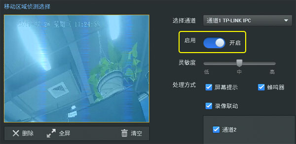 如果是TP-LINK硬盘录像机搭配除海康、大华外的其他厂家摄像头,可能会因为摄像头使用私有协议设置移动侦测导致录像机设置不成功,请进入摄像头的WEB界面,手动开启摄像头移动侦测功能即可。