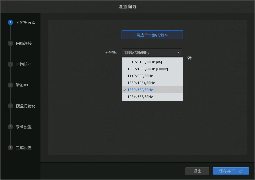 打个比方,如果录像机输出最高分辨率为4K,搭配1080P的显示屏,那么将输出分辨率设置为1920*1080时显示效果最佳。设置太高,显示器无法支持,设置过低,会导致图像效果降低。