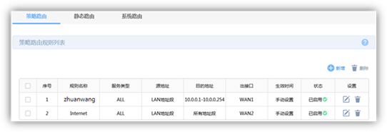 在企业、学校、医院、社康、政务网络环境中,如果多宽带接入的时候,可能有的宽带是互联网,部分是医疗、教育、公安专网)。这种同时接入的情况下,路由器默认的自动选路可能会将部分数据通过专网转发,从而导致上网异常。