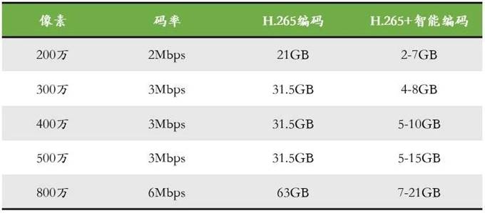 大家经常问到摄像机智能编码一天占用多少存储容量时,得到的答复可能是2~7G,或者5~10G,并不是个固定值。我们知道H.264定码率一天42G(4M)、H.265定码率一天21G(2M),但H.265+存储容量不是个固定值,而且不同像素摄像机的容量也有差异。下面给大家介绍存储规划时应该怎么考虑智能编码。