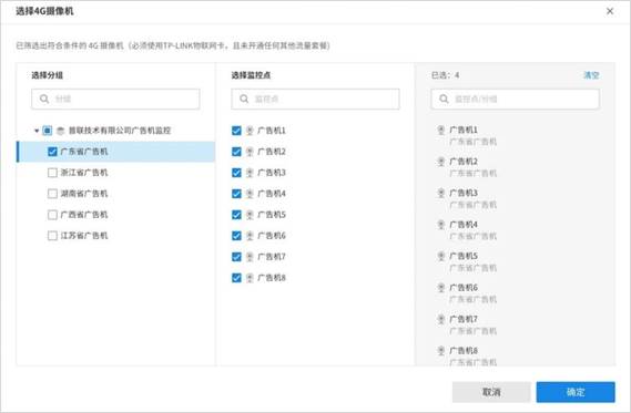 第四步:选择需要开通4G流量池的摄像机,添加至4G流量池服务。