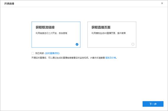 第二步、有“获取取流链接”和“获取直播页面”两种,以“获取取流链接”为例。
