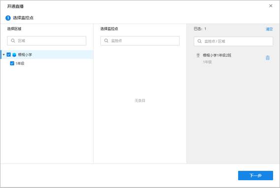 第三步、选择需要直播的监控点位。