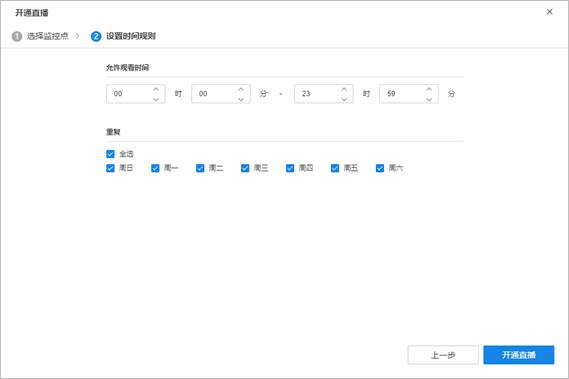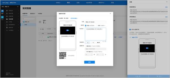 此外,针对获取直播页面这种应用,在开通直播服务的设备,还可以点击直播设备的“设置”界面进行修改直播的时间段和启用、编辑H5直播页面。