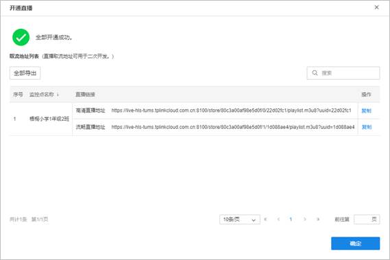 第五步、生成直播取流地址,可手动复制或将取流地址以Excel方式导出。