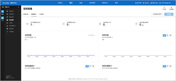 针对所有添加至实时直播的监控点位,可以在“数据统计”界面,查看访问流量、访问数据以及前十的监控点位统计。