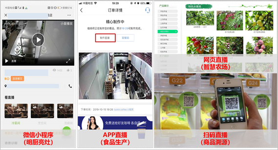 商用云平台可以在线生成H5直播页面和二次开发链接,可将实时监控画面快速分享至多个平台(网站、应用软件、微信、视频播放器等外部应用)进行免插件播放,并支持详细的直播数据统计,可应用于明厨亮灶、商品溯源、智慧养殖、远程教育、景区直播等各种直播业务场景。
