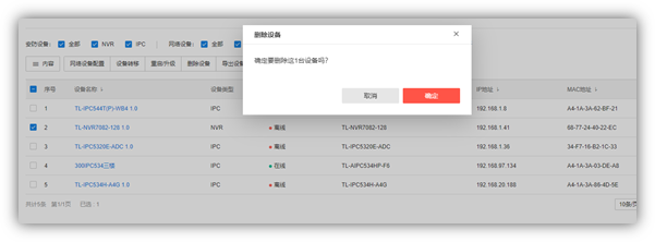 选择对应监控设备点击“删除设备”功能,删除后的点位进入到待添加设备列表,可以根据需要再次添加。