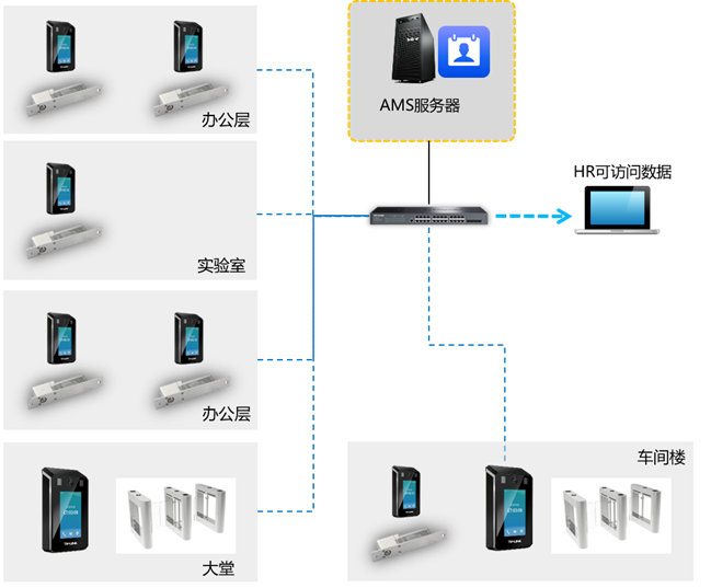 大型企业考勤门禁系统,一般是多机多点位、人员数量庞大、组织机构复杂,考勤和门禁计划精密,要求有更加专业、细致的控制系统,即AMS(Attence Management System)考勤管理系统。TP-LINK考勤门禁系统能够执行精细化的控制、管理海量人员/设备、记录数据存储容量无上限。