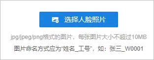 3、点击“上传照片”,选择一张该人员的清晰正面照作为刷脸考勤或开门的比对图。注意照片必须保证正面五官清晰、无口罩帽子、光线均匀明亮、无修图。