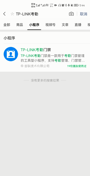 方法一:打开微信,在搜索栏输入“TP-LINK考勤门禁”,选择小程序并进入即可。
